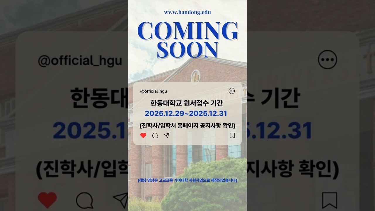 한동대학교 2026학년도 정시 홍보 영상 #대학생 #수능 #정시
