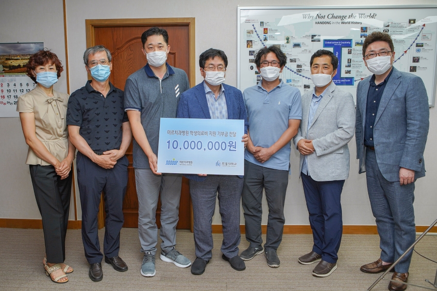 포항 미르치과병원은 18일 한동대학교 총장실에서 한동대 학생들의 의료비 지원을 위해 사용해달라며 기부금 1천만 원을 기탁했다.